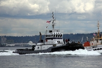 Her electrical service is provided by two, 105kW generator sets. Driven by two, Caterpillar 3304 BT diesel engines. The tug's capacities are 91,000 gallons of fuel, 7,000 gallons of water, 1,200 gallons of lube oil, and 450 gallons of hydraulic oil.