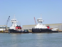 Fitted with an INTERcon coupler system, with 50(in) diameter pins. The tug is "married" with the 560(ft), by 40(ft), by 74(ft), 180,000(bbl), double hulled barge, The 650-9. Which was constructed simultaneously in 2010, by VT Halter Marine Incorporated of Pascagoula, Mississippi (hull # 1987) for Crowley Marine Services Incorporated.