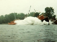 The tug's towing equipment consists of a World War II surplus Almon Johnson towing winch. Mounted on her stern.