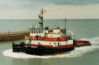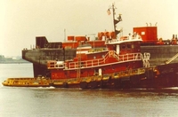 Her towing gear consists of an Almon Johnson Single drum towing machine with a pendant drum and gypsy head powered by a GM6-71 diesel engine and Hydraulic towing pins.