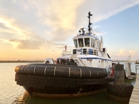 Her electrical service is provided by two, 99kW, 6.8 liter, John Deere 450-V generator sets. The tug's capacities are 37,000 gallons of fuel, and 6,200 gallons of water.