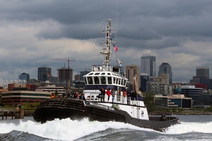 Her electrical service is provided by two, 105kW generator sets. Driven by two, Caterpillar 3304 BT diesel engines. The tug's capacities are 91,000 gallons of fuel, 7,000 gallons of water, 1,200 gallons of lube oil, and 450 gallons of hydraulic oil.