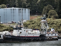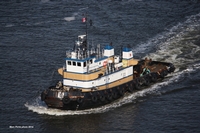Her electrical service is provided by two, 75kW/208V generator sets. Driven by two, John Deere 4048 diesel engines. With a third auxiliary 75kW/208V generator set. Driven by a Detroit Diesel 4-71 HPU diesel engine. The tug's capacities are 75,000 gallons of fuel, 5,000 gallons of water, 1,200 gallons of lube oil.