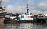 Her electrical service is provided by two, 132kW, Cummins 6-BTA5 generator sets. The tug's capacities are 44,350 gallons of fuel, 1,575 gallons of lube oil, and 12,470 gallons of fresh water.