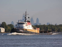Her electrical service is provided by two, 90kW, Caterpillar D 3304 generator sets. The tug's capacities are 155,000 gallons of fuel oil, 3,300 gallons of lube oil, and 15,000 gallons of potable water.