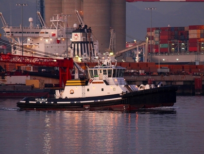 Powered by two, Caterpillar 3516C diesel engines with two, Rolls Royce US255 z-drives. She is twin screw tractor tug, rated at 6,800 horsepower.