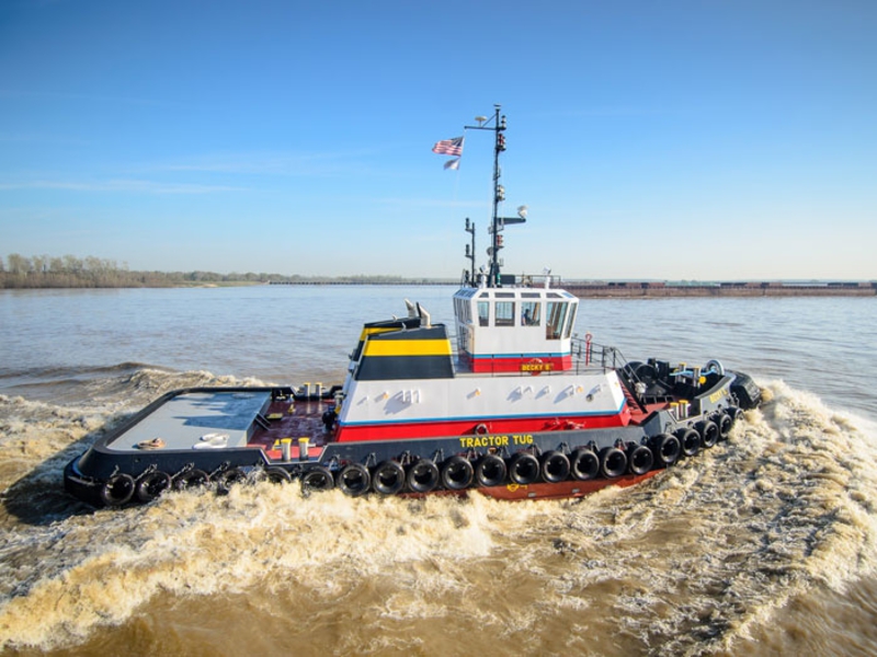 Powered by two, Tier III complaint Caterpillar 3516C diesel engines. With two, Rolls Royce US20SFP z drives. Outfitted with two, 90.6(in) by 82.4(in) pitch, four bladed, stainless steel propellers. She is a twin screw tractor tug, rated at 4,480 horsepower.