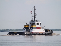 Powered by two, Caterpillar 3516C diesel engines. With two, Ulstein Aquamaster US205 MK2 z-drives. With 90.6(in) diameter by 82.4(in) pitch, four bladed, stainless steel propellers. She is a twin screw tractor tug, rated at 4,000 horsepower.