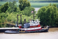 Powered by three, Detriot Diesel 16V149TI diesel engines. With Twin Disc reduction gears, at a ratio of 7:1. She is a triple screw tug, rated at 5,200 horsepower.
