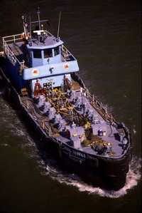 Powered by a single, seven cylinder, Fairbanks-Morse OP diesel engine, with a 5 1/4 bore. She is a single screw vessel, rated at 560 horsepower. Prior to her conversion, she had a capacity of 1,088 barrels of product.