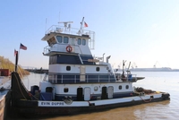 Repowered in 1992, she is driven by two Cummins KTA38-M diesel engines. With Twin Disc reduction gears, at a ratio of 6:1. She is a twin screw towboat, rated at 2,000 horsepower.