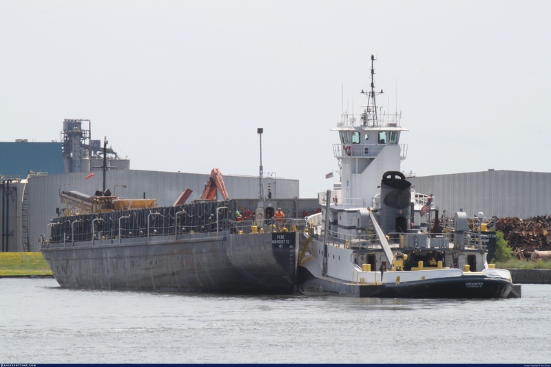 In 1998, she was acquired by the Pere Marquette Shipping Company of Ludington, Michigan. And the tug was renamed as the Undaunted. The tug was widened, and rebuilt with a raised wheelhouse, and was outfitted with a Hydraconn coupler system. The tug paired with the 385(ft) by 58(ft) by 24(ft) self unloading barge the Pere Marquette 41.