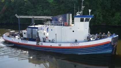 In 2024, the tug was retrofitted with an ammonia-to-electrical power system, which splits, or “cracks,” liquid ammonia into its base elements of hydrogen and nitrogen. The hydrogen is then funneled into a fuel cell, generating the power for the vessel.