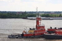 Powered by two, EMD GM R16-645-F7B, turbo charged diesel engines. With Reinjes GMBH WAF 3455 reduction gears. Turning two, Bollinger Machine Shop, Aquamet 17, stainless steel, fixed pitch propellers. She is a twin screw tug, rated at 6,140 horsepower.