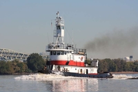 Powered by two, Tier II compliant, Caterpillar C32 diesel engines. Twin Disc MG-540 reduction gears, at a ratio of 6.18:1. Turning two, 71(in) by 72(in), four bladed, fixed pitch, stainless steel propellers, mounted in kort nozzles. She is a twin screw tug, rated at 1,800 horsepower.