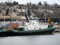 Her electrical service is provided by two, 75kW generator sets. Driven by two, GM Detroit Diesel 6-71 diesel engines. With a hydraulic pump off of a PTO. The tug's capacities are 50,550 gallons of fuel, 2,100 gallons of hydraulic oil, 2,400 gallons of lube oil, and 5,400 gallons of water.