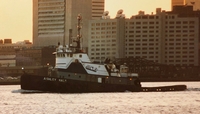 Powered by two, twelve cylinder, Alco 251C, turbo diesel engines. With Falk 30 MRVC A35-G reduction gears, at a ratio of 6:7:1. Turning two, 132(in) by 95(in), fixed pitch, stainless steel, propellers. She is a twin screw tug, rated at 4,400 horsepower.