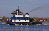 Powered by two, Caterpillar 3412 diesel engines. Turning two, stainless steel, fixed pitch propellers. She is a twin screw tug, rated at 1,400 horsepower.